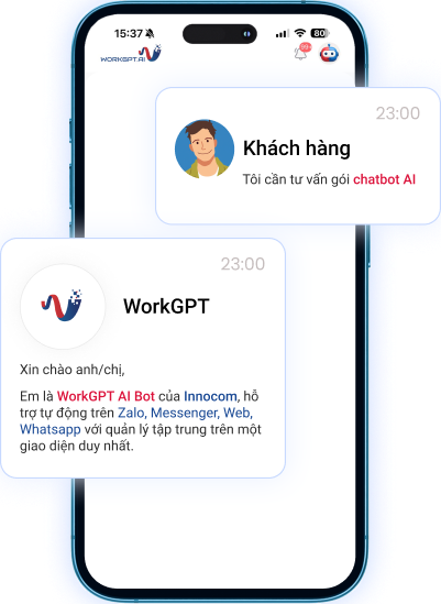 WorkGPT AI là chatbot được tích hợp đa nền tảng để hỗ trợ doanh nghiệp chăm sóc khách hàng hiệu quả: từ tư vấn đến chốt đơn chỉ thưc hiện trên 1 khung chat