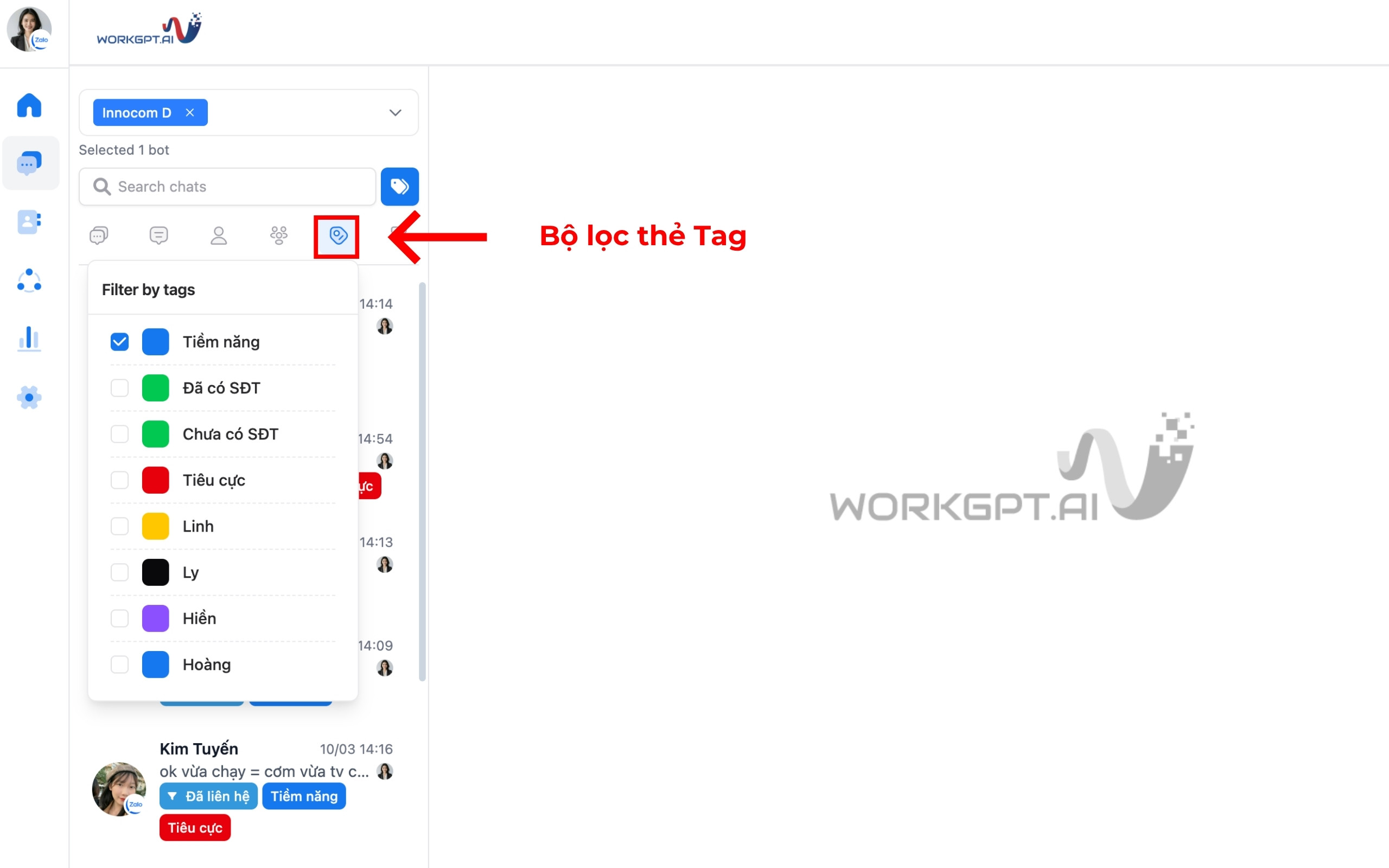 Bước 3: Khi khách hàng đã được gắn tag, bạn có thể sử dụng bộ lọc để tìm kiếm tệp khách hàng và chăm sóc lại một cách dễ dàng.